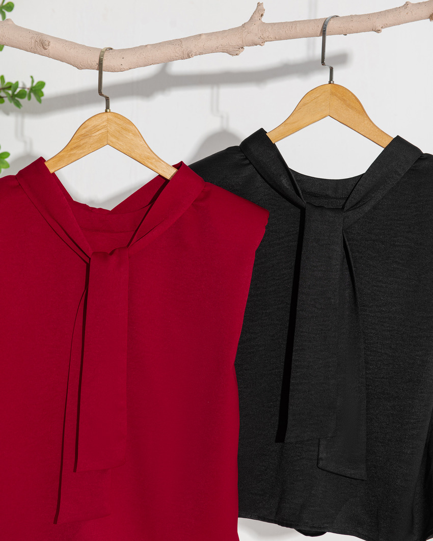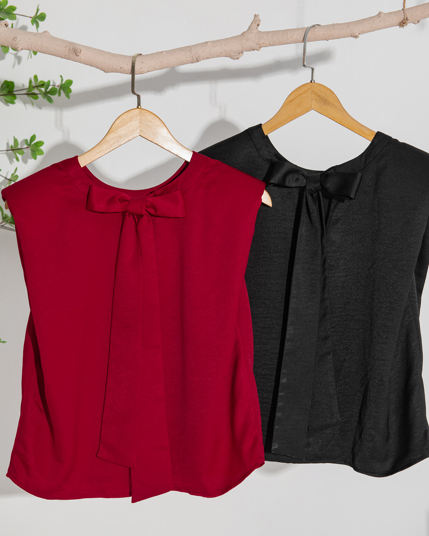 ÁO LỤA NHUNG CỘT NƠ SAU CỔ - SM941