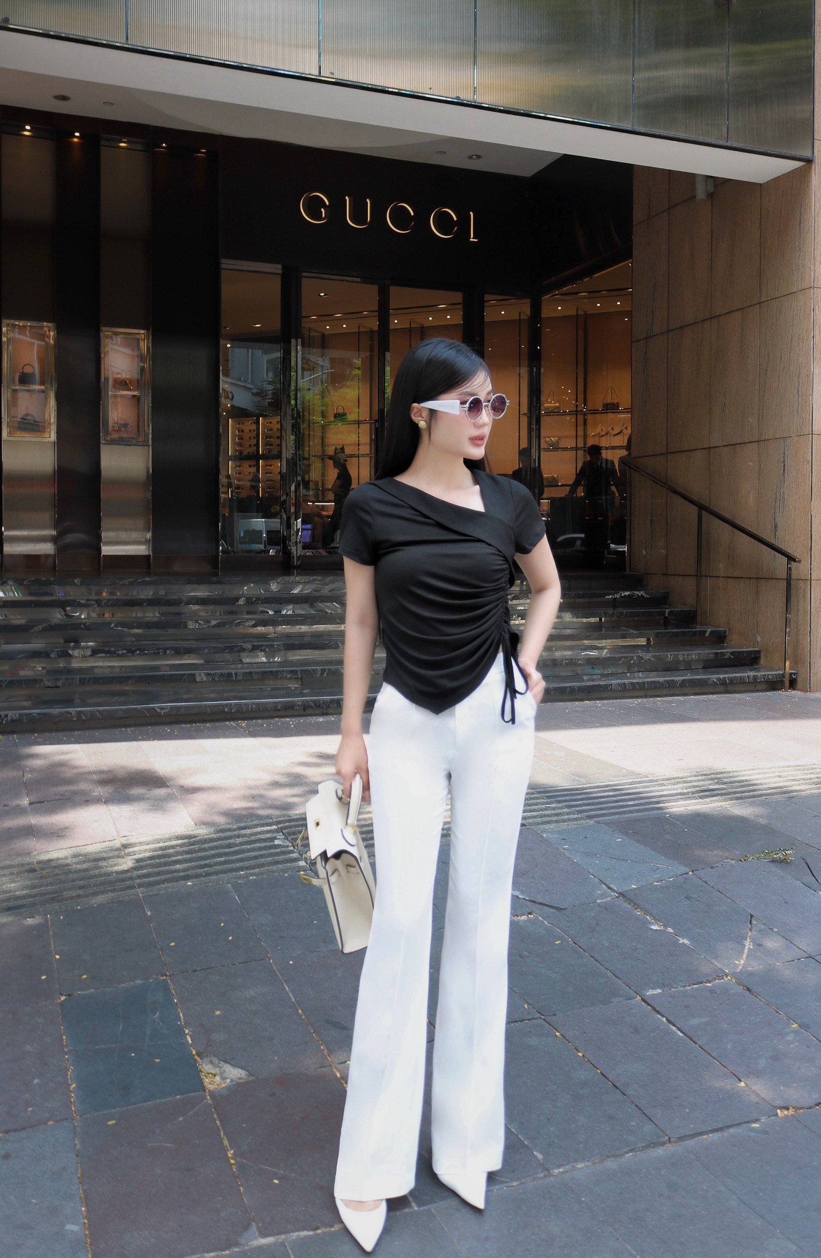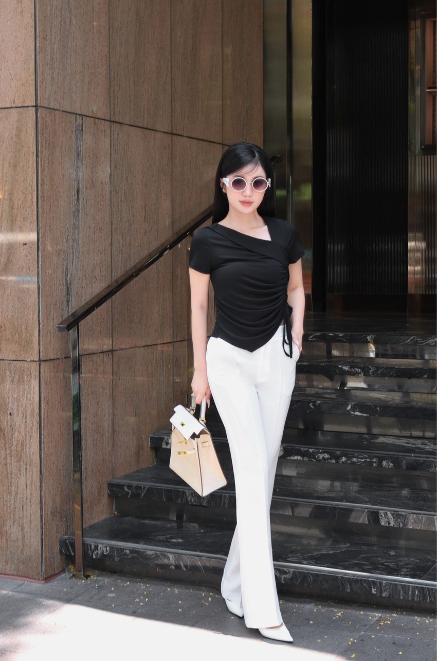 ÁO THUN CỔ V LỆCH RÚT NHÚN - AT078